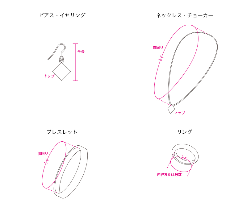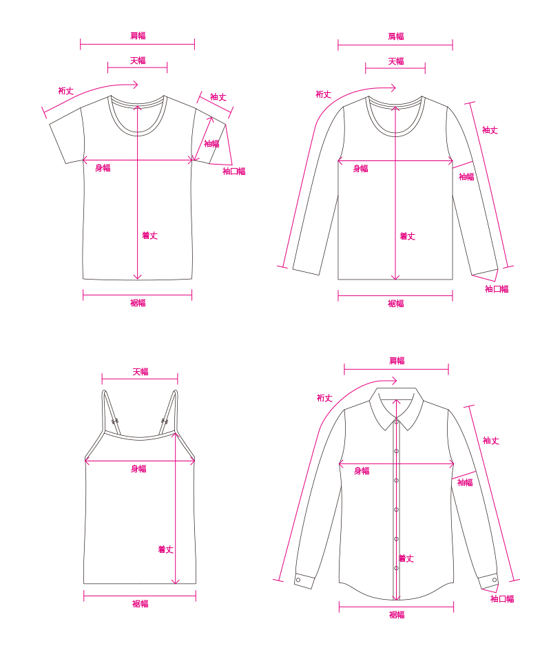 商品の「サイズ詳細」はカテゴリによって下記の基準で採寸しております。ご注文の前にご確認ください。