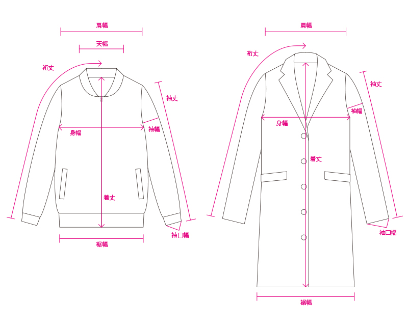 また、デザインによってはサイズや採寸箇所が異なる場合がございます。予めご了承ください。